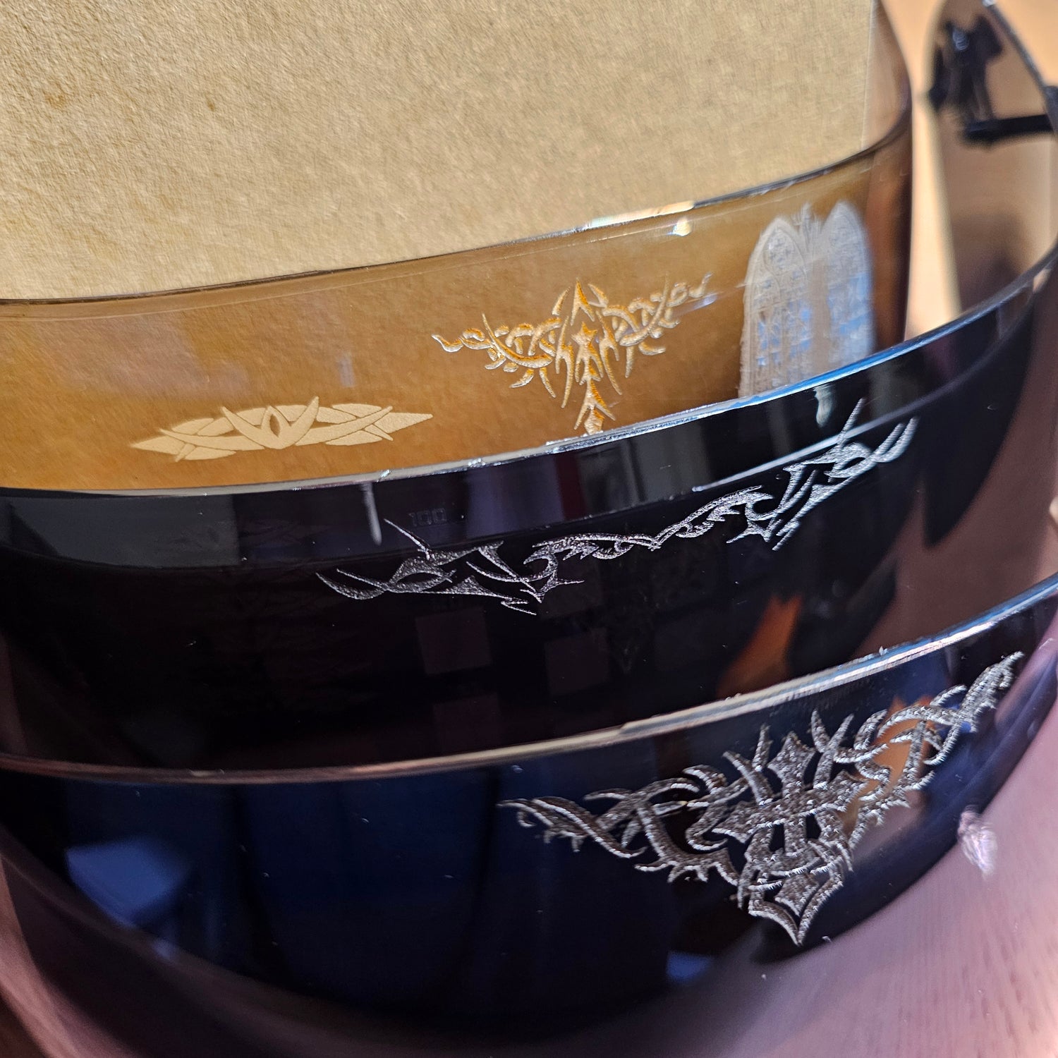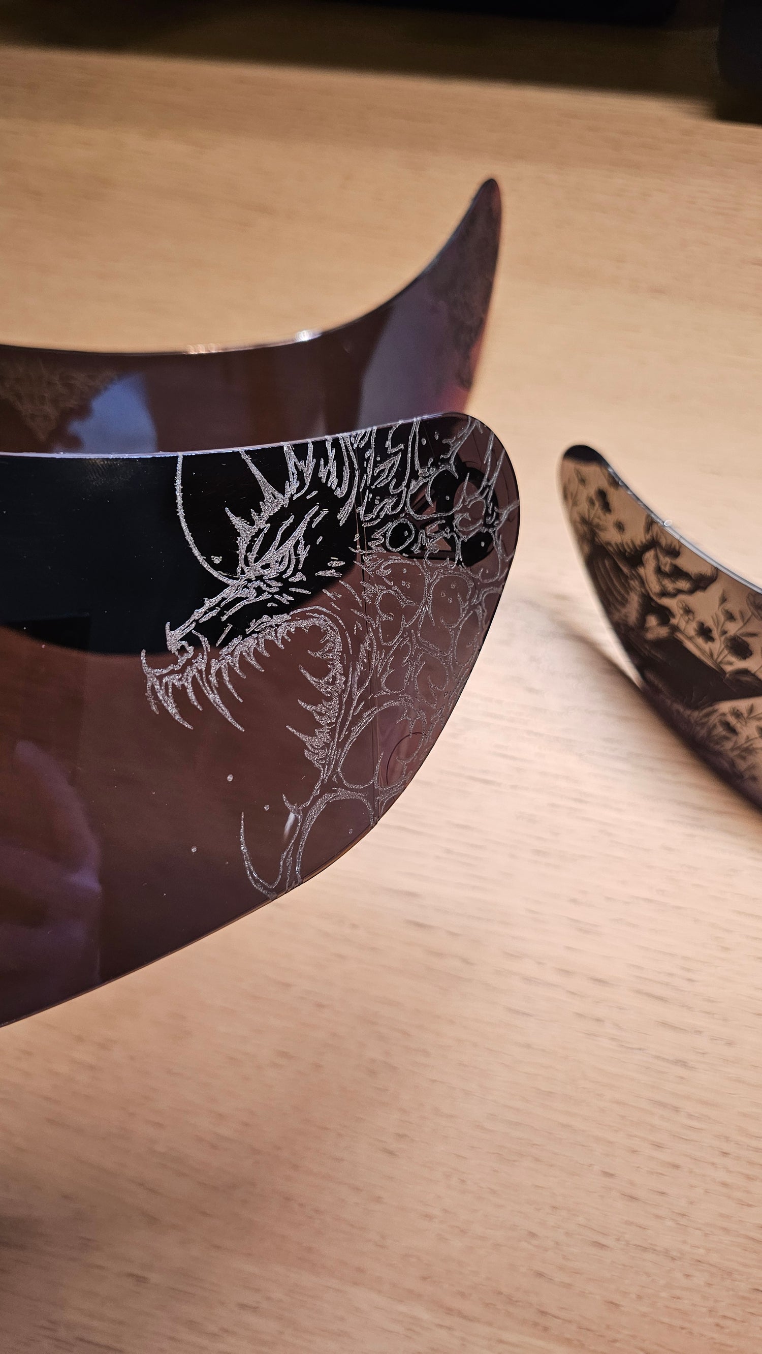 Our engravings work on all common visor materials – however, they look particularly beautiful on mirrored surfaces.